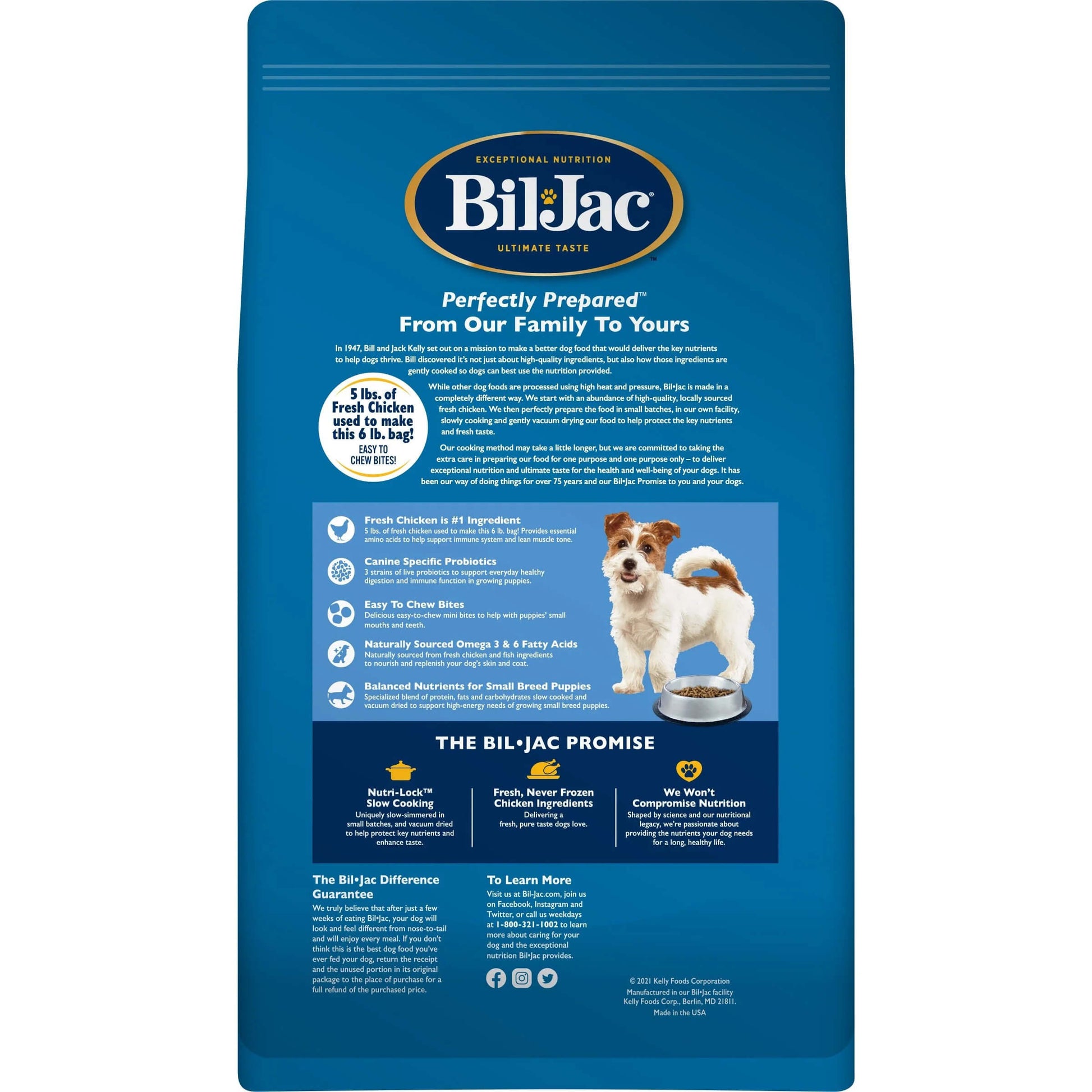 Bil Jac Small Breed Puppy es un alimento formulado para cachorros de razas pequeñas. Elaborado con pollo fresco, brinda proteínas de alta calidad para el desarrollo muscular y contiene nutrientes esenciales que apoyan el crecimiento saludable.