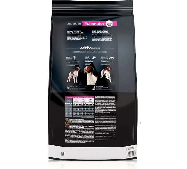 Eukanuba Adult Medium Breed es un alimento seco completo y equilibrado, formulado específicamente para perros adultos de razas medianas (peso entre 10 y 25 kg) mayores de 12 meses. Este producto promueve una condición física óptima y una masa muscular magra gracias a su contenido energético equilibrado.