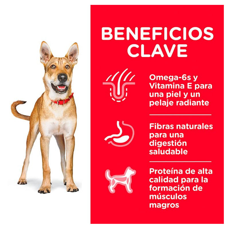 Hill's Adult 1-6 es un alimento balanceado diseñado para perros adultos de 1 a 6 años. Contiene proteínas de alta calidad para músculos fuertes y antioxidantes que apoyan el sistema inmunológico. Favorece una digestión saludable y una vida activa.