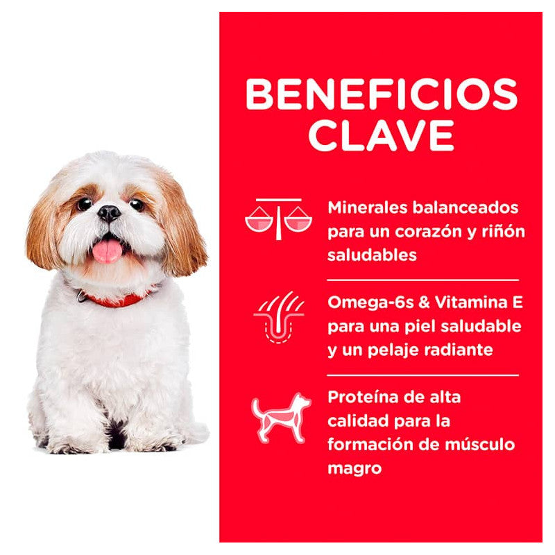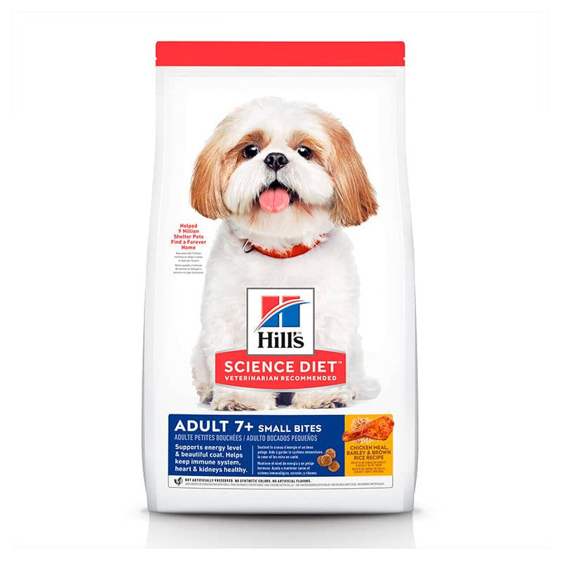 Hill's Adult 7+ Small Bites es un alimento diseñado para perros mayores de 7 años. Sus croquetas pequeñas facilitan la masticación, mientras que sus nutrientes apoyan la energía y vitalidad. Promueve la salud del corazón, los riñones y las articulaciones.