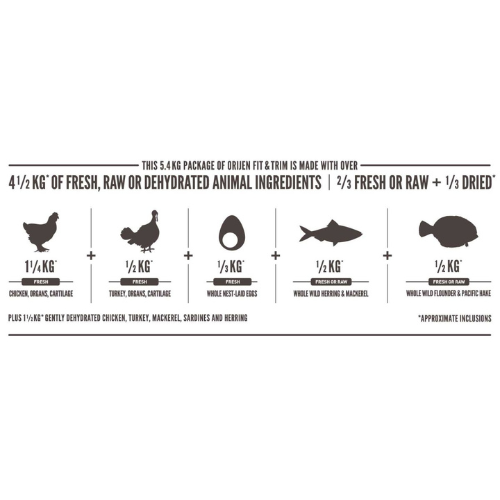 Orijen Fit & Trim Cat es un alimento seco para gatos con sobrepeso o propensos al aumento de peso, elaborado con un 85% de ingredientes de origen animal de calidad, como aves, pescado, órganos y huesos. Esta fórmula biológicamente apropiada proporciona una nutrición equilibrada, rica en proteínas y baja en carbohidratos, ideal para mantener un peso saludable en gatos adultos.