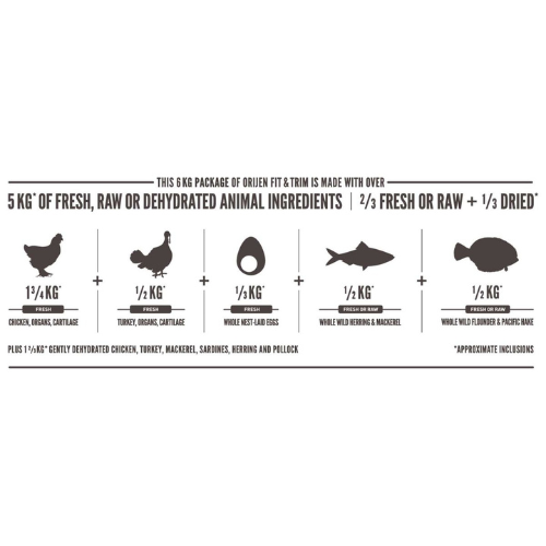 Orijen Fit & Trim Dog es un alimento seco para perros adultos, elaborado con ingredientes de primera calidad, que potencia la vitalidad y el bienestar de tu canino. Proporciona una alimentación biológicamente apropiada con proteínas y nutrientes esenciales para promover la salud de tu perro.