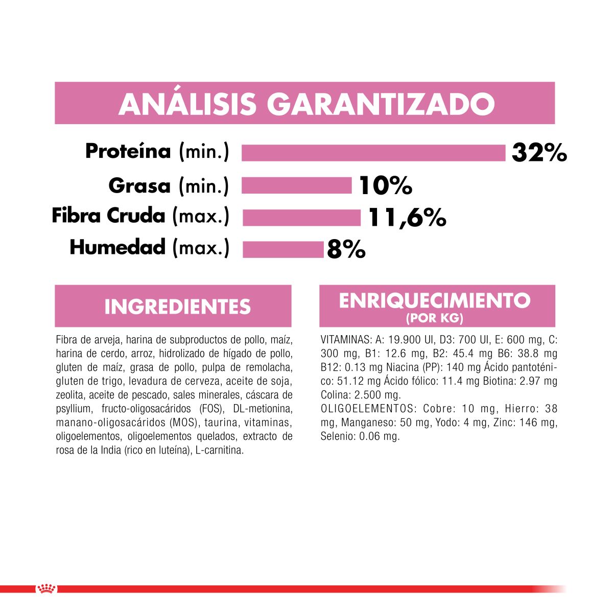 • Control del peso: Contiene un nivel ajustado de grasas y calorías que ayuda a prevenir el aumento de peso excesivo, manteniendo un equilibrio entre el aporte energético y las necesidades del gatito tras la esterilización.