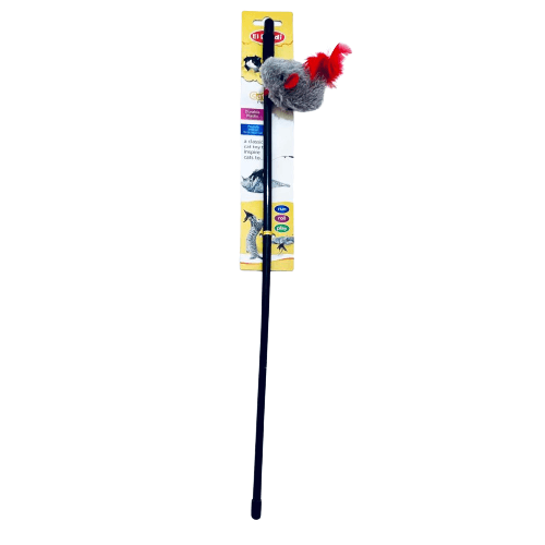 Este juguete, imita la acción de un ratón en movimiento. Como tiene una varilla y un cordel puedes moverlo por el aire, por el suelo o por sobre alguna superficie y tu mascota pensará que realmente se está moviendo por sí solo. Posee un cascabel que emite un sonido muy agradable que llamará aún más la atención de tu gato/a.